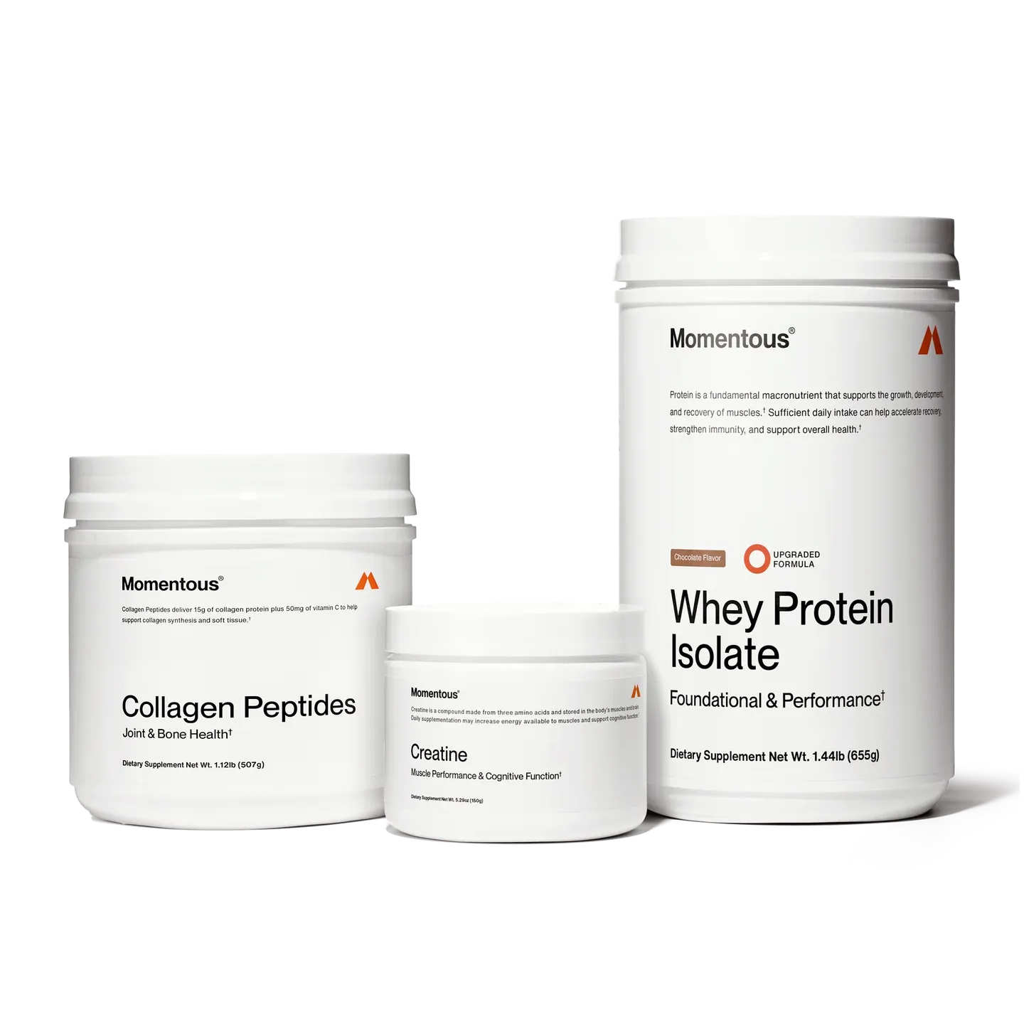Momentous Collagen Peptides combine 10g of grass-fed bovine collagen with 5g of FORTIGEL®—a clinically researched form shown to promote collagen synthesis in tendons and ligaments. Enhanced with Vitamin C to support absorption, this formula helps strengthen joints, improve skin elasticity, and support long-term tissue resilience.