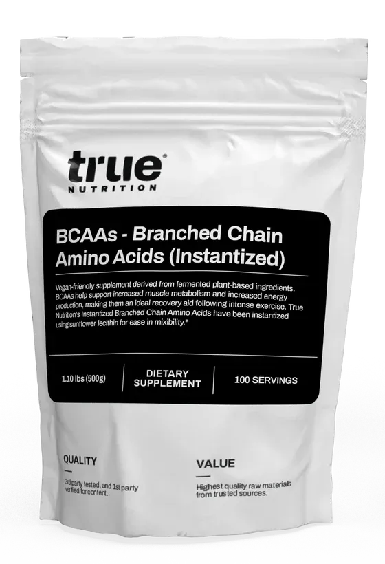 As a dietary supplement, BCAAs help support increased muscle metabolism and increased energy production, making them an ideal recovery aid following intense exercise.✝ True Nutrition's Instantized Branched Chain Amino Acids are derived from fermented plant-based ingredients, are entirely vegan-friendly, and have been instantized using sunflower lecithin for ease in mixibility!
