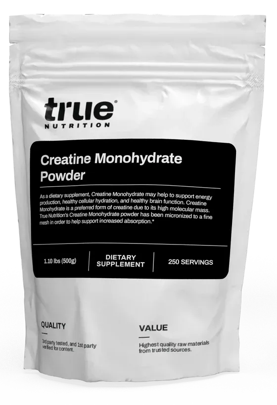 Creatine is a substance that is naturally produced by the body, and is present in every human cell used in the production of energy through ATP (Adenosine triphosphate). As a dietary supplement, Creatine Monohydrate may help to support increased energy production, healthy cellular hydration, and healthy brain function.✝ Creatine Monohydrate is a preferred form of creatine due to its high molecular mass. True Nutrition's Creatine Monohydrate powder has been micronized to a fine mesh in order to help support increased absorption.✝